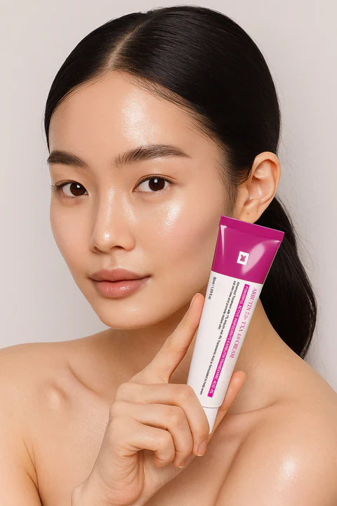 Poznaj krem z 7% arbutyną i kwasem traneksamowym — silną formułę rozjaśniającą, która pomaga zredukować ciemne plamy, piegi i uporczywe przebarwienia.