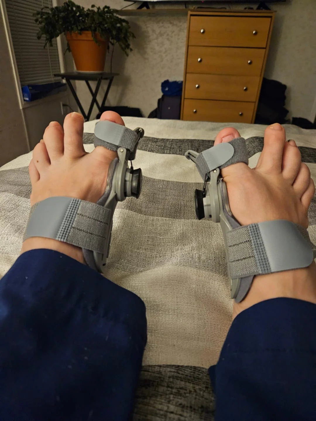 Lekki i wytrzymały, nie przeszkadza w codziennych czynnościach, spowalnia postęp deformacji i trwale poprawia komfort chodzenia.
