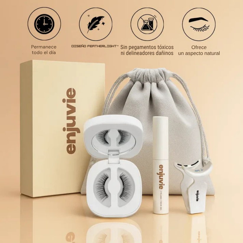 Descubre el secreto de una aplicación fácil, sin pegamento ni delineador, con Enjuvie. Luce unas pestañas naturalmente hermosas, sin esfuerzo y sin ningún riesgo para tus ojos.